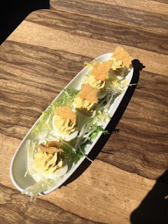 The Truffled Devil Eggs are a must-try, rather a must-share! They art artistically served on a bed of frisee lettuce and topped with a delicate parmesan lace. Although, the portion is enough to share; the taste is so good you will not want to share! The whimsical looking presentation made me want to eat this appetizer with my fingers. I did with a big smile on my face. The flavors and textures were delightful. The food is comfort food that mom used to make, elevated with sophisticated flavors and artistic presentation.